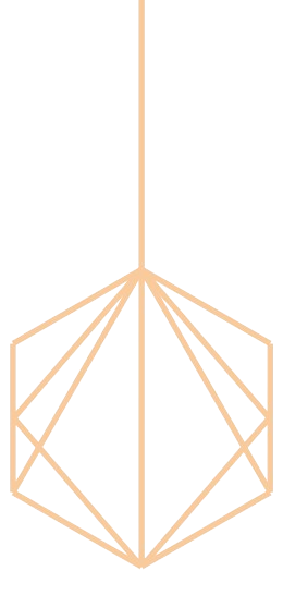 A hexagon with 1 ray pointing up and 4 interior lines that bounce into the ray’s starting vertice
